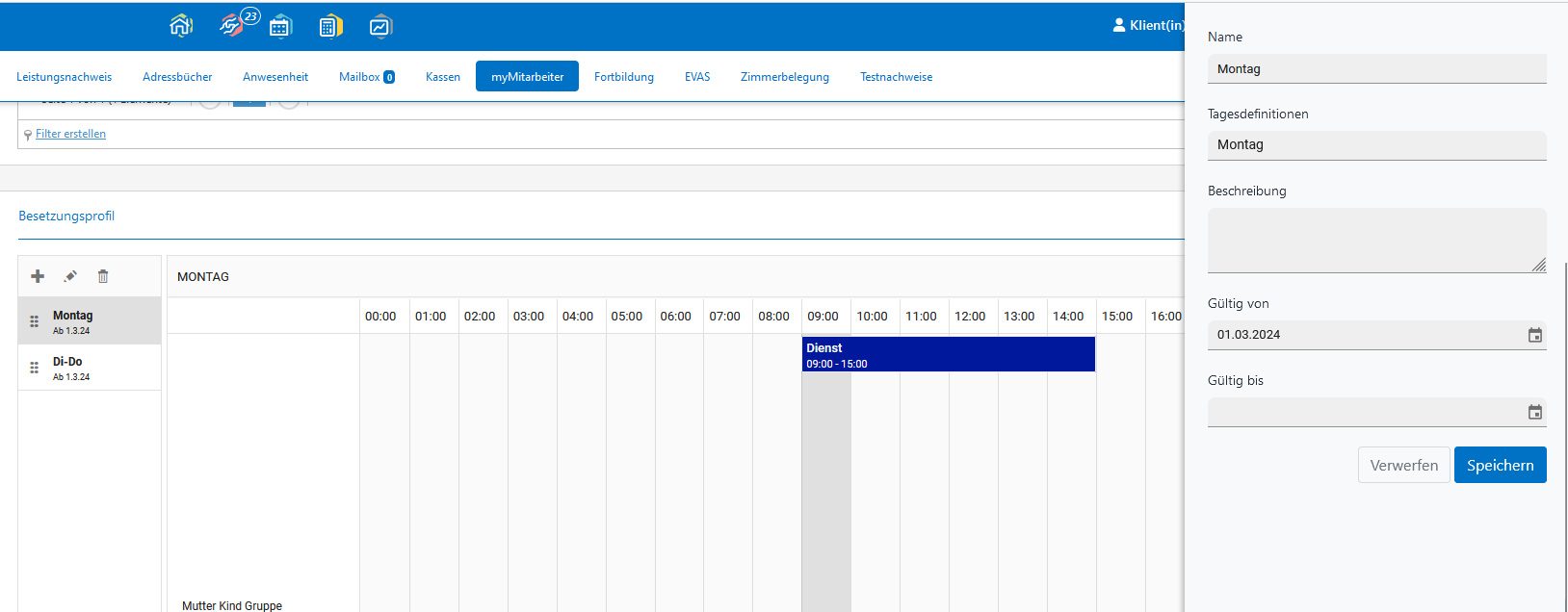💡 Das Besetzungsprofil ist ideal für Mitarbeitende mit regelmäßigen Arbeitsmustern. Es sorgt für Konsistenz in der Planung und reduziert manuellen Aufwand erheblich.